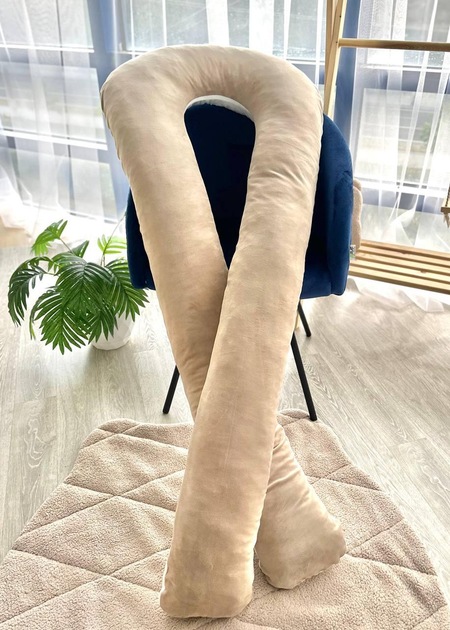 Подушка для вагітних U-подібна молочний + бежевий велюр 160 см