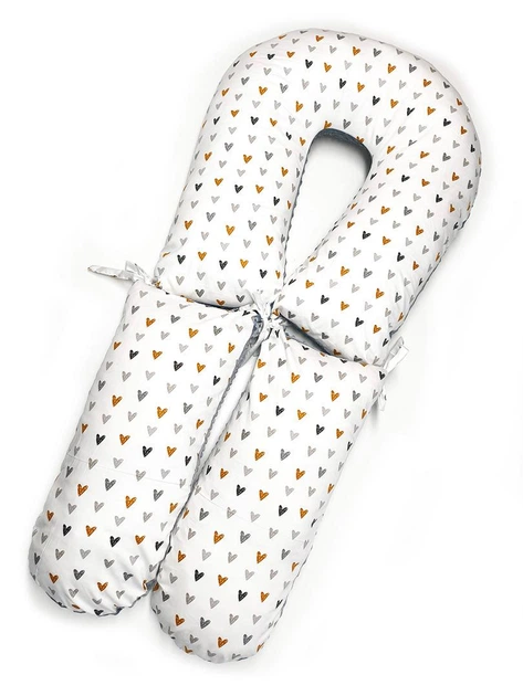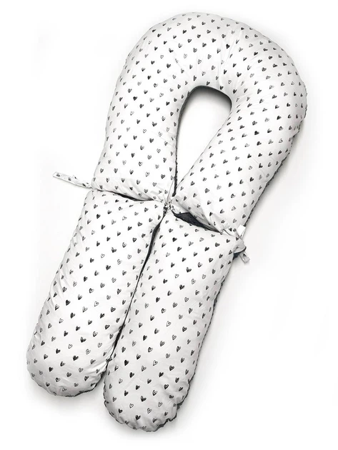Подушка для вагітної зі знімною наволочкою Трансформер / Сердечка на білому та графітовий плюш