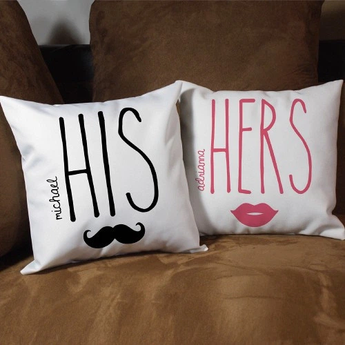 Парні декоративні подушки з принтом "Мій улюблений хлопчик. Моя улюблена дівчинка"