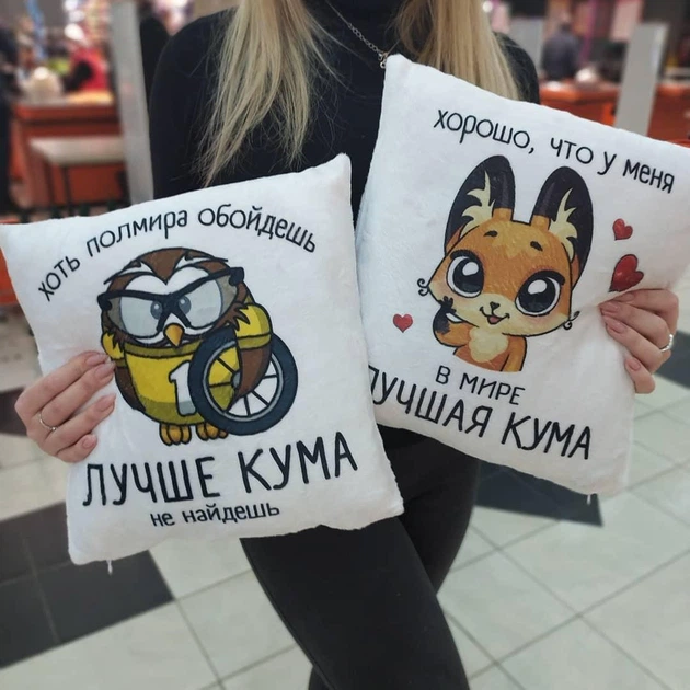 Парні декоративні подушки з принтом "Найкращий кум. Найкраща кума 2"