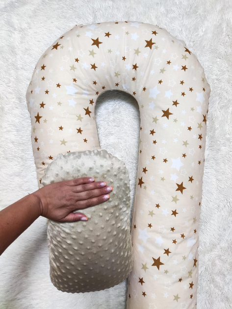 Подушка для вагітної U образна / Зірки на бежевому та бежевий плюш