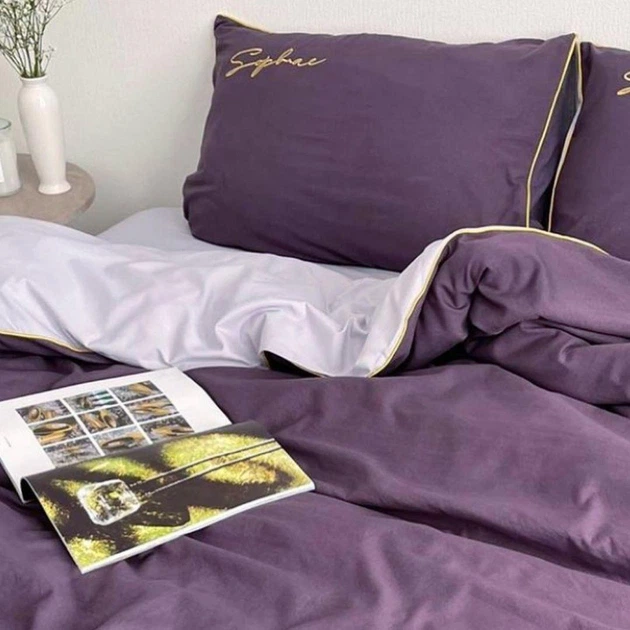 Cатиновий турецький комплект постільної білизни Євро Фіолетовий 200 x 220 (121202) наволочки 2 х 50х70 см