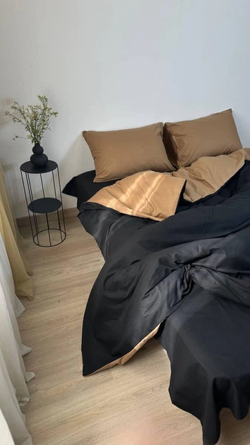 Постільна білизна однотонна Кава з молоком / Чорний сімейний розмір 145х215см х2шт, бязь, наволочки 70х70, бавовна