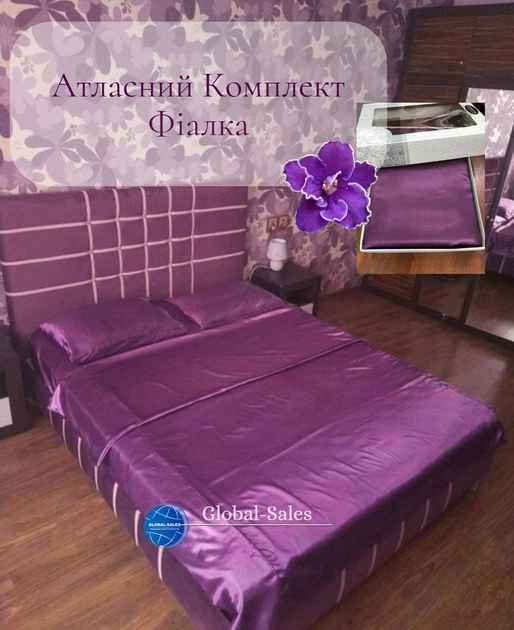 Атласна Фіалка Півторна постільна білизна 4 наволочки 70*70 Moka Textile 145*210