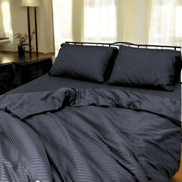 Комплект постільної білизни страйп сатин графіт двоспальний