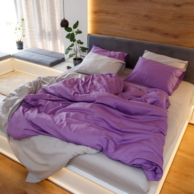 Комплект атласної фабричного постільної білизни преміум класу Двоспальний (180 х 210) Фіолетовий (Д-П4К07-02)