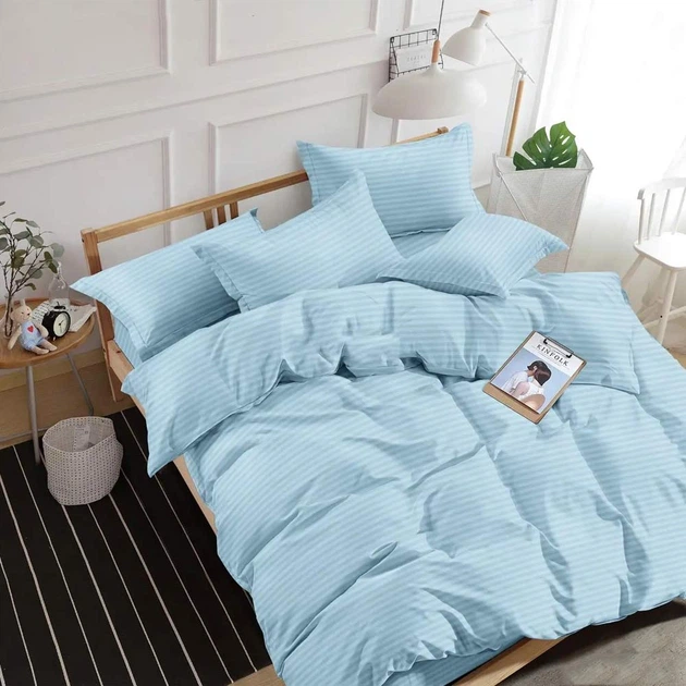 Комплект постільної білизни Laplandia 02453 сатин страйп 150*220 см блакитний
