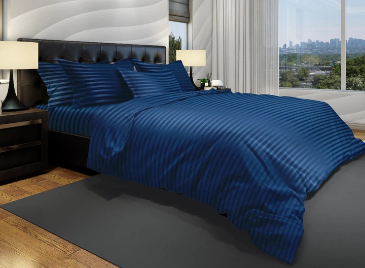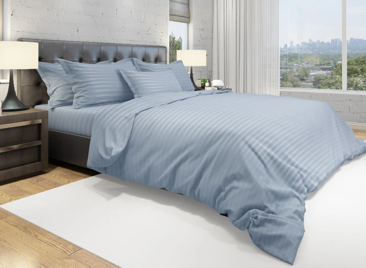 Комплект Dreams At Home постельного белья Страйп-сатин Двуспальный 70stripesatinblueПростирадло на Резинці 160*200*25 та Під