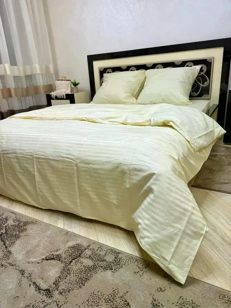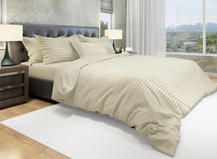 Постільна білизна бавовняна в смужку Євро 200 x 220 Страйп Сатин 70 x 70 Шампань