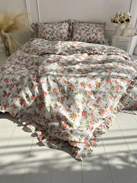 Постільна білизна Прованс з рюшами, двоспальний розмір 180х215 см, бязь наволочки 50х70, бавовна