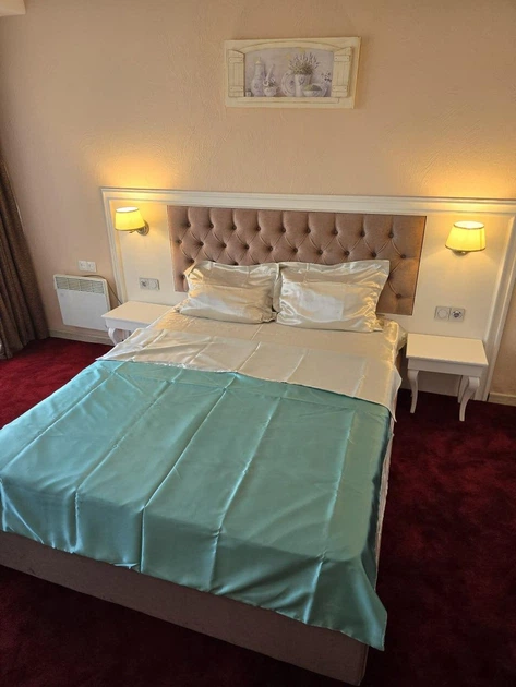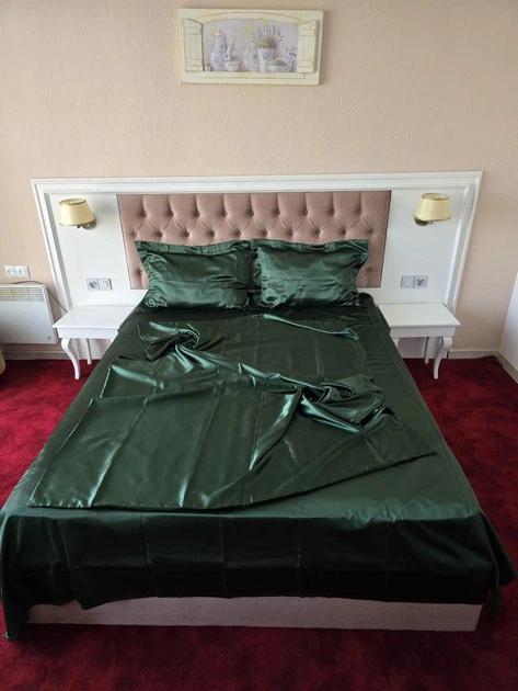 Атласний набір білизни Напівторний 145х210 з простирадлом на гумці наволочка 2х70х70 Зелений (Р7-fabric-at-028-1)