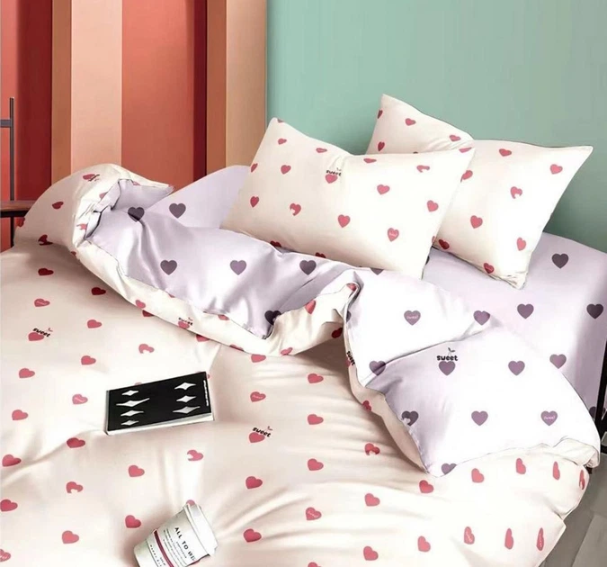 Постільна білизна з резинкою Сердечка мікс, ранфорс Двухспальний розмір, наволочки 50/70