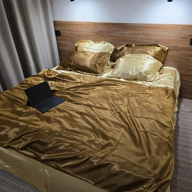 Постільна білизна Атласна Двоспальний 180х210 наволочка 70х70 2шт Золотий (Д-atlas25-05-02)