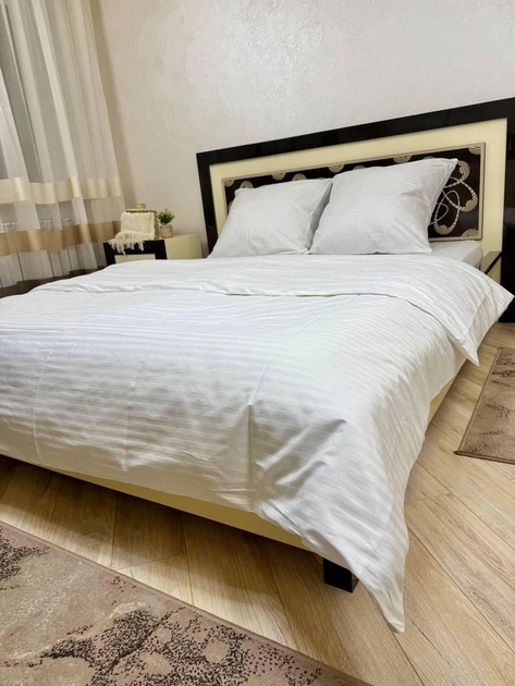 Постільна білизна бавовняна у Смужку Двоспальна 180 x 220 Страйп сатин 70 x 70 Білий