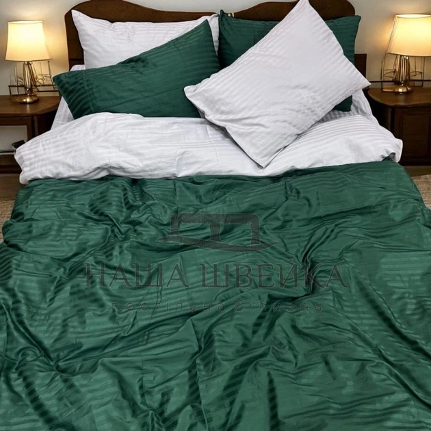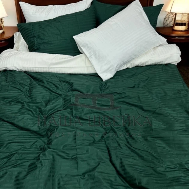 Комплект постільної білизни Наша Швейка Сатин страйп Смарагдовий та білий однотонний Полуторний 150х215 см