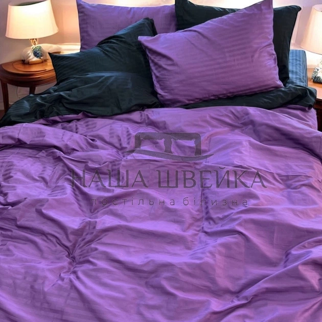 Комплект постільної білизни Наша Швейка Сатин страйп Фіолетовий однотонний та чорний графіт Полуторний 150х215 см