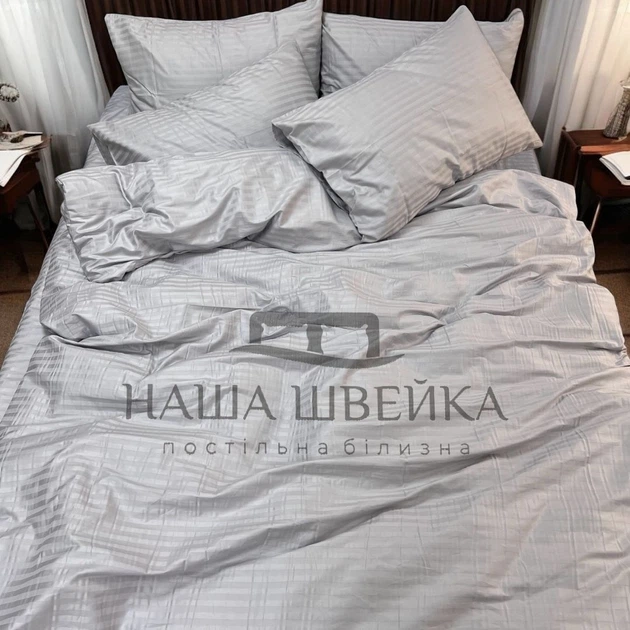 Комплект постільної білизни Швейка Сатин страйп Сірий однотонний Полуторний 150х215 см