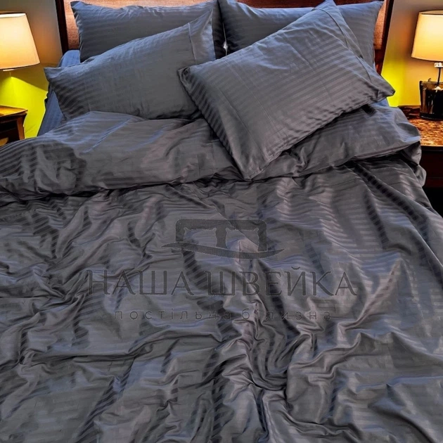 Комплект постільної білизни Наша Швейка Сатин страйп Темний сірий однотонний Полуторний 150х215 см