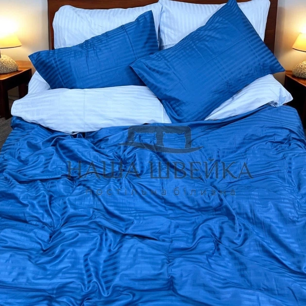 Комплект постільної білизни Наша Швейка Сатин страйп Яскраво-синій та ніжний блакитний однотонний Полуторний 150х215 см