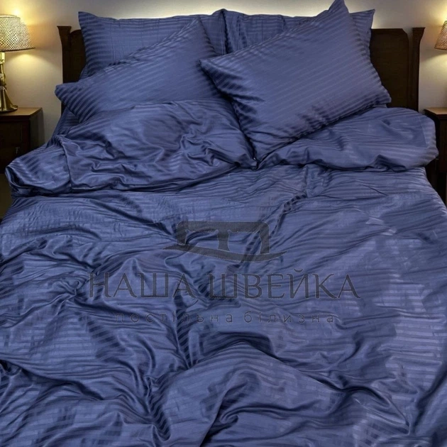 Комплект постільної білизни Наша Швейка Сатин страйп Димчасто синій однотонний Полуторний 150х215 см