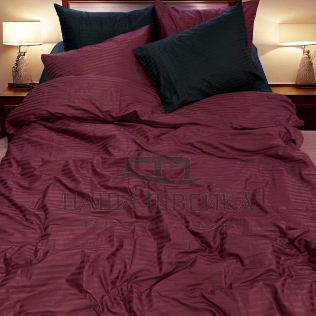 Комплект постільної білизни Наша Швейка Сатин страйп Бордовий і чорний однотонний графіт Полуторний 150х215 см