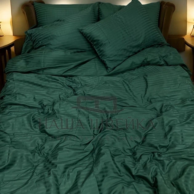 Комплект постільної білизни Наша Швейка Сатин страйп Смарагдовий однотонний Полуторний 150х215 см