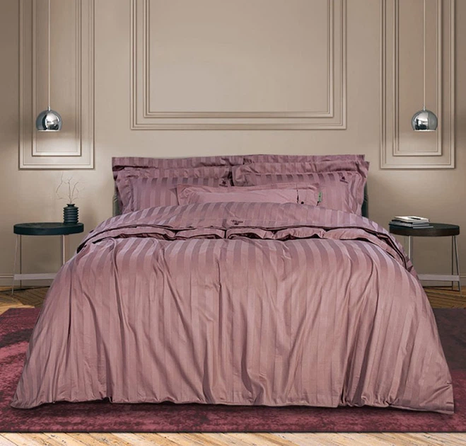 Комплект постільної білизни MERISET 120090642 Полуторний Сатин страйп Ліловий