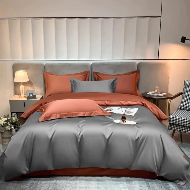 Комплект постільної білизни MERISET 120091208 Полуторний Сатин однотон Сірий, Помаранчевий