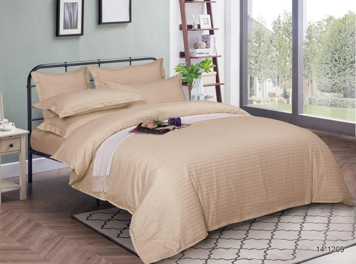 Комплект постільної білизни Бежевий Krispol сімейний на резинці Страйп Сатин 180*200*25 (330.551209.2)