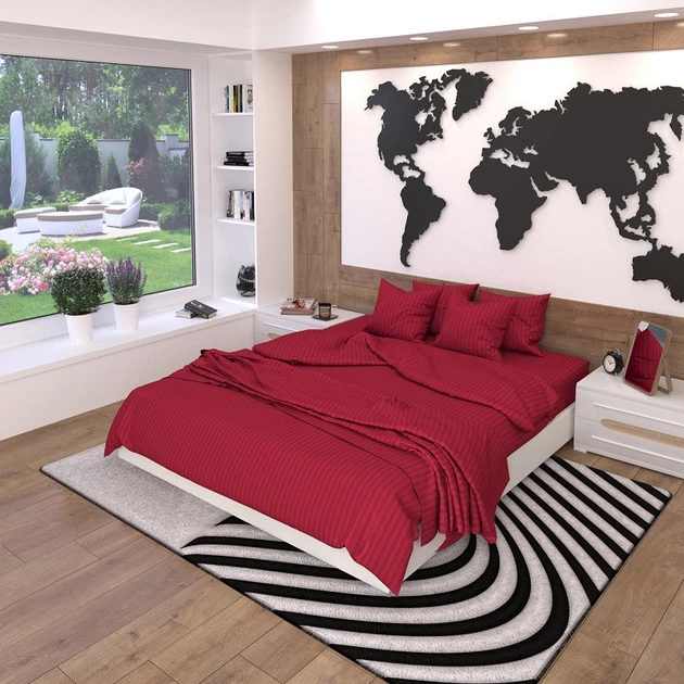 Комплект постільної білизни Бордовий Krispol сімейний на резинці Страйп Сатин 180х200х25 (330.551840.2)