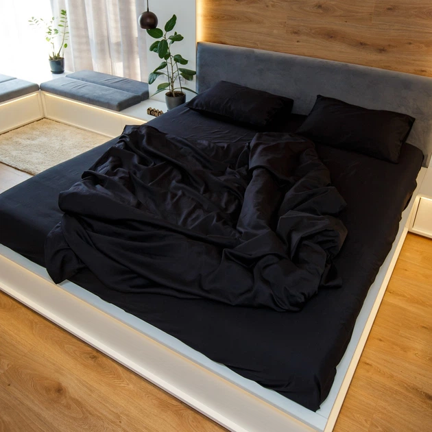 Комплект постільної білизни з сатину NaviHome "Чорний місяць" чорний полуторний