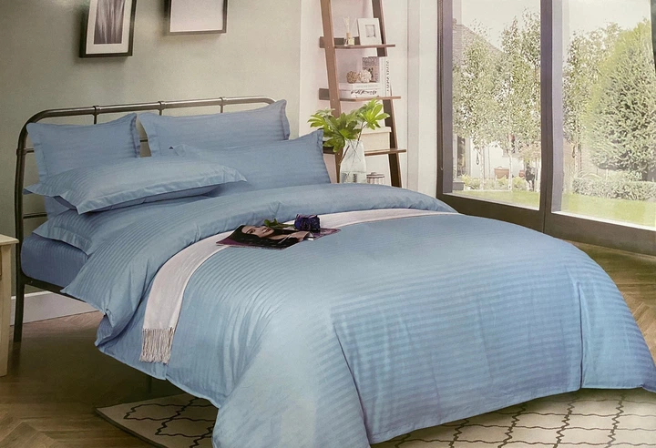 Комплект постільної білизни Блакитний Krispol сімейний на резинці Страйп Сатин 180х200х25 (330.554411.2)