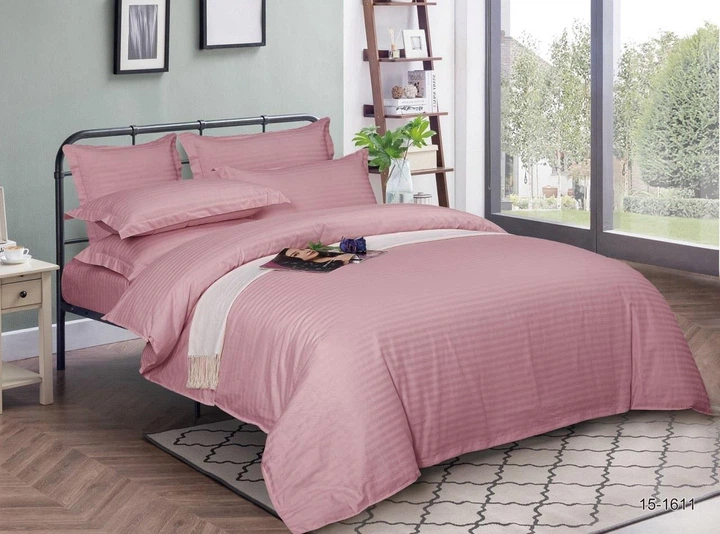 Комплект постільної білизни Рожева Пудра Krispol сімейний на резинці Страйп Сатин 180*200*25 (330.551611.2)