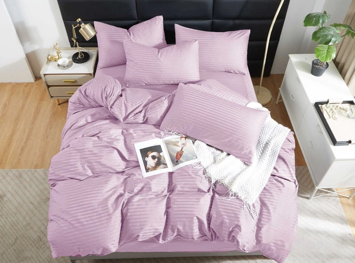 Комплект постільної білизни Бузковий Krispol сімейний на резинці Страйп Сатин 180х200х25 (330.55009.2)