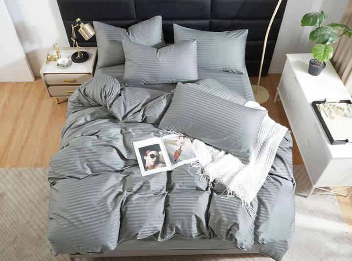 Комплект постільної білизни Сірий Krispol сімейний на резинці Страйп Сатин 180х200х25 (330.55023.2)