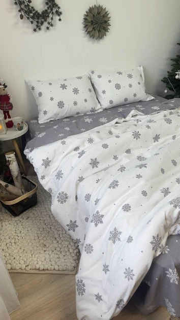 Постільна білизна тепла Срібна зима, євро розмір 200х220 см, турецька фланель (байка), наволочки 70х70, 100 бавовна з начосо