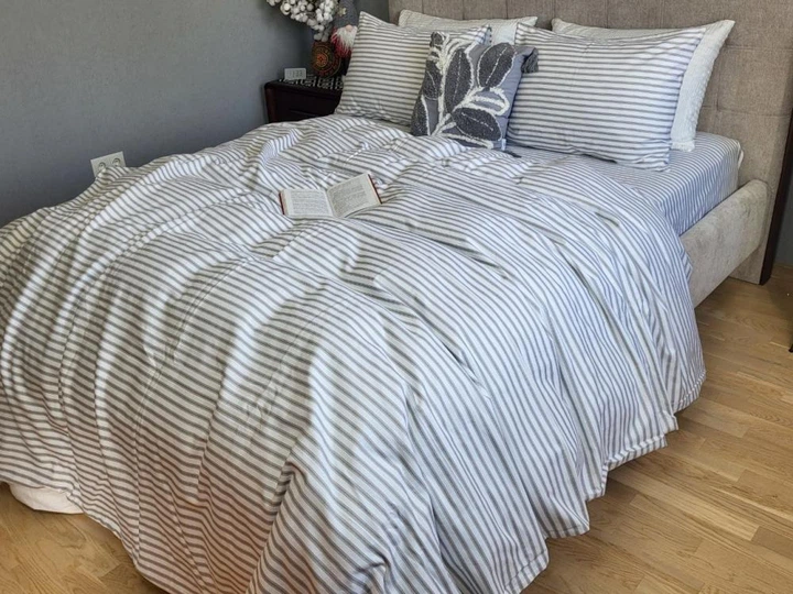 Комплект постільної білизни Tag Tekstil преміум серія Multistripe страйп сатин 100 бавовна сімейний (MST-06)