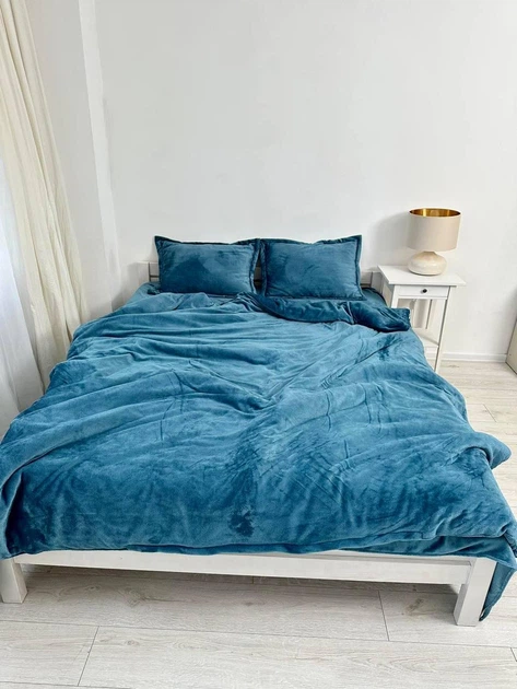 Постільна білизна плюшева однотонна Синя, сімейний розмір 160х215см х2шт, наволочки 70х70
