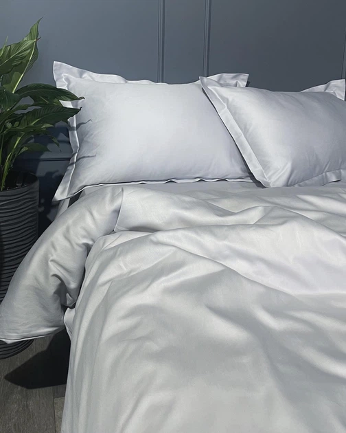Постільна білизна Premium MLS сатин Євро комплект 200*220/70*70 срібний