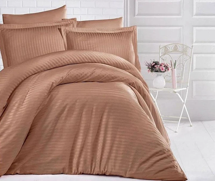 Постільна білизна MERISET Hazelnut Сатин страйп Коричнева однотонна Двоспальний комплект 200х220