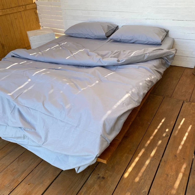 Постільна білизна з резинкою Сірий ранфорс Двухспальний розмір, наволочки 70/70