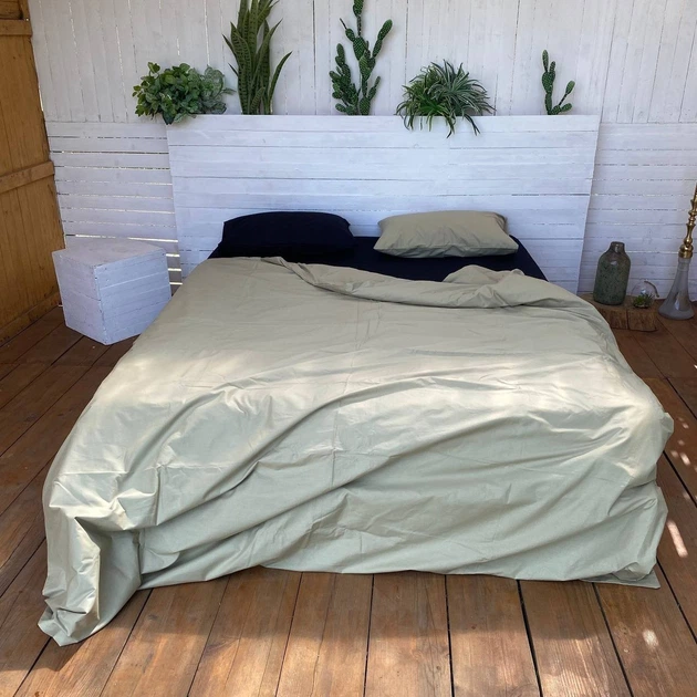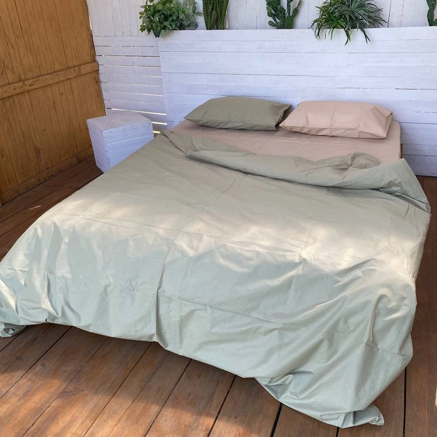 Постільна білизна з резинкою Хакі ранфорс Двухспальний розмір, наволочки 50/70