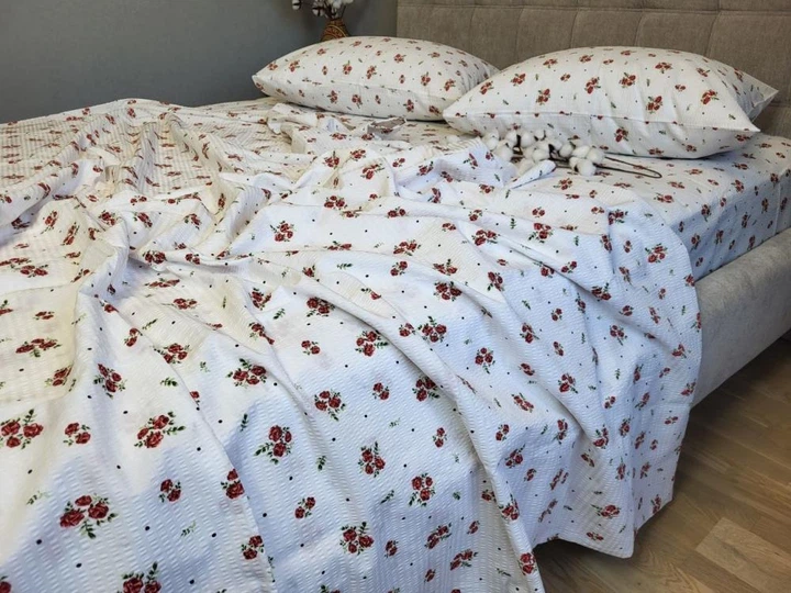 Постільна білизна з гумкою Майя DUO двоспальний розмір 180х215 см, жатка, турецький ранфорс гофре , наволочки 70х70, 100 ба