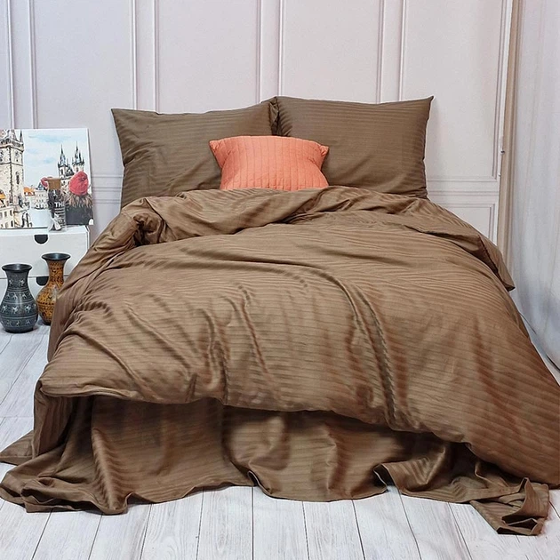 Комплект постільної білизни MERISET 120090090 Двоспальний Сатин страйп Капучіно