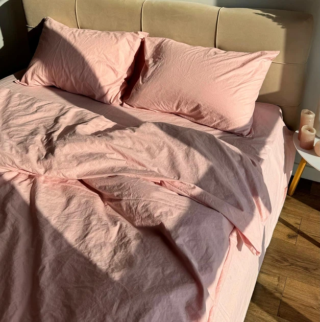 Комплект постільної білизни LavSon Washed Cotton Варена бавовна Євро 200х220 (з простирадлом на гумці 180х200х25) Пудра