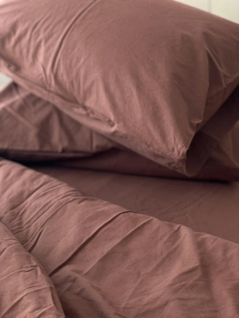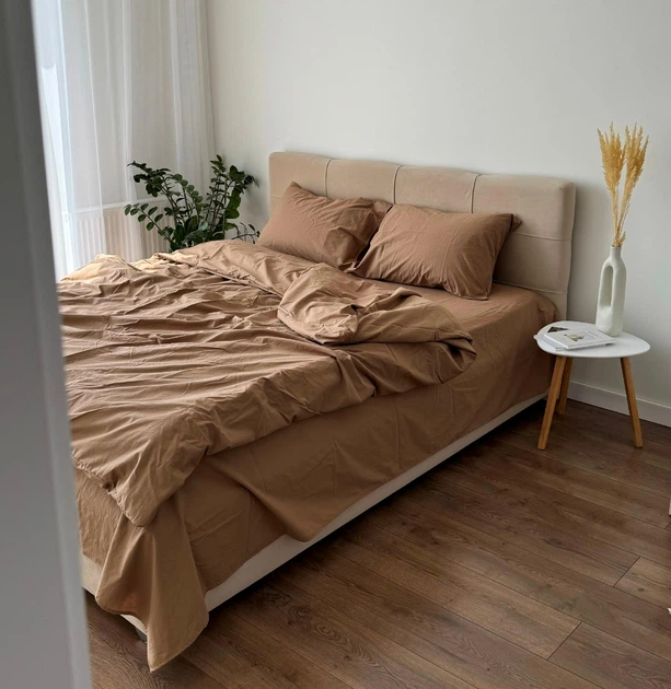 Комплект постільної білизни LavSon Washed Cotton Варена бавовна Євро 200х220 (з простирадлом на гумці 200х200х30) Шоколад