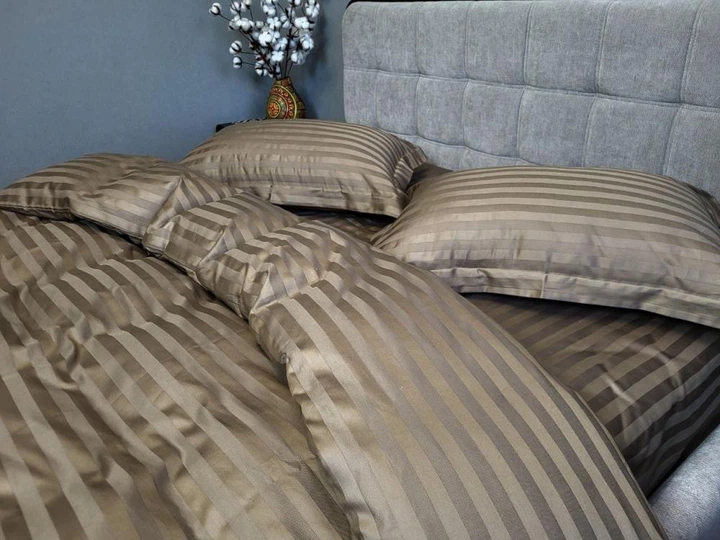 Постільна білизна HONEY BEIGE, сатин страйп PREMIUM 2/2см Двухспальний розмір, наволочки 50/70