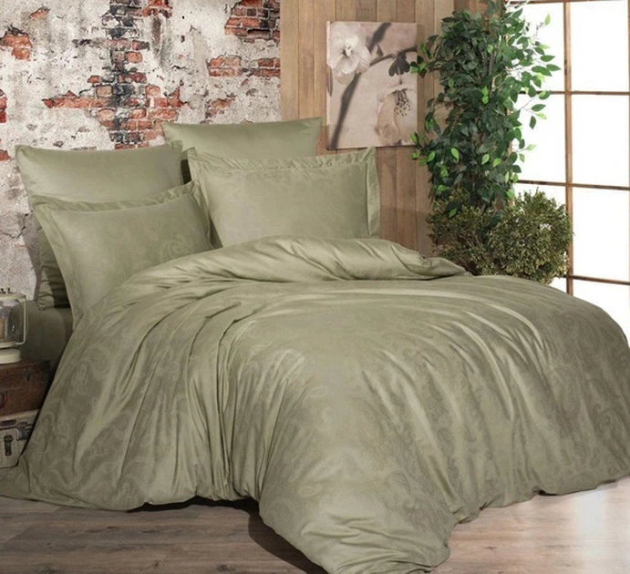 Постільна білизна GREEN FOG DAMASK Сатин жакард Полуторний на резинці 560376-5