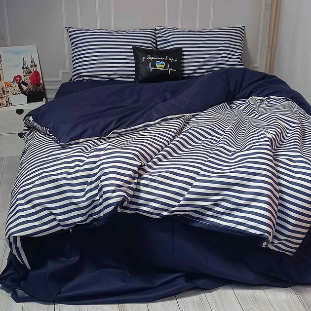 Комплект постільної білизни MERISET 120091463 Сімейний на резинці Ранфорс Синій