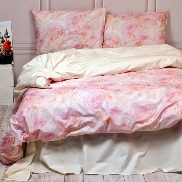 Комплект постільної білизни MERISET 120091555 Сімейний на резинці Ранфорс Пудровий
